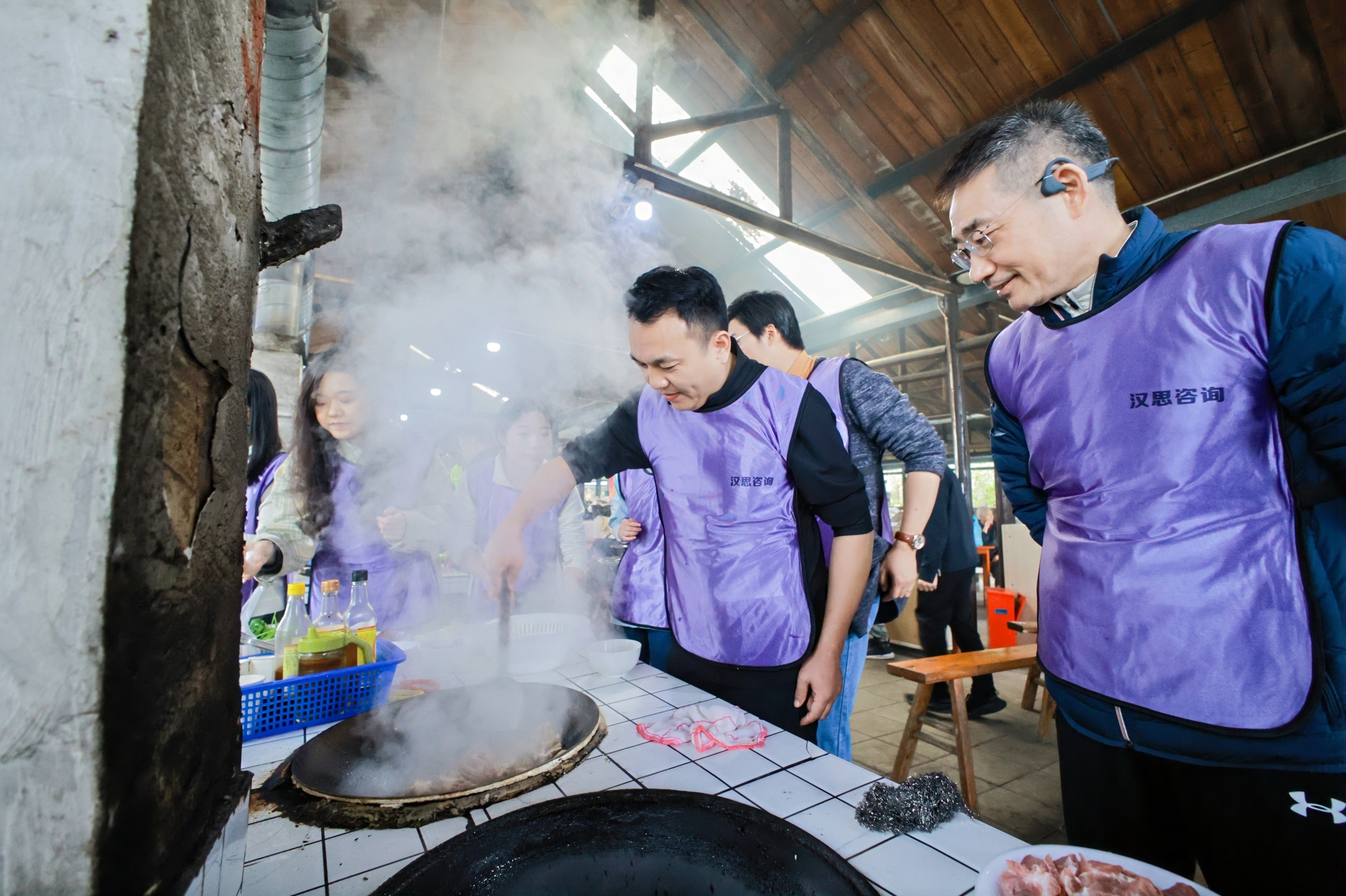 临近中午,10个大锅灶同时生火,“厨神争霸赛”正式开始。每组组内分工明确、各展所长,各组之间相互配合,你帮我煮饭、我帮你做菜,当各组的“拿手菜”端上桌、评委开始品尝打分时,气氛更是达到了高潮。在其乐融融的时光里,每个人都体会到了自己动手、共同努力带来的美味与幸福。